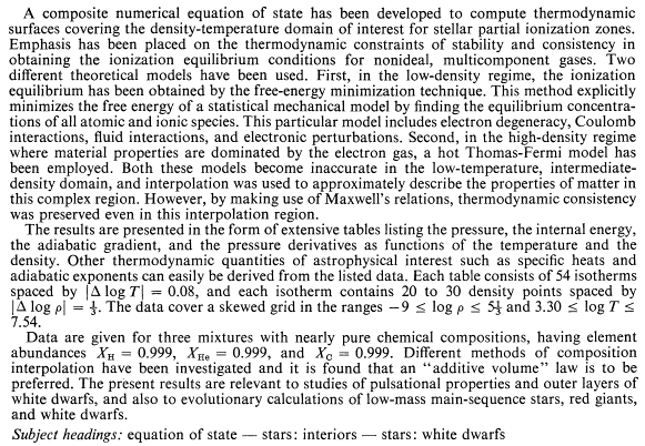 | Authors: | Fontaine, G.; Graboske, H. C., Jr.; van Horn, H. M. | |
