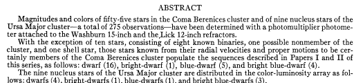 | Title: | Photoelectric Studies. III. Color-Luminosity Arrays for the Coma Berenices and Ursa Major Clusters. [ Erratum: 1950ApJ...111..666. ] | |