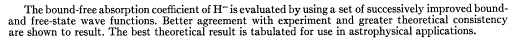 | Title: | That Bound-Free Absorption Coefficient of the Hydrogen Negative Ion. | |
