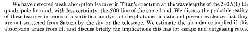 | Title: | On the Possible Detection of H_{2} in Titan's Atmosphere | |