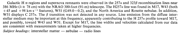 | Title: | Radio Recombination Lines at a Wavelength of 78 Centimeters | |