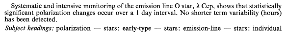 | Emission Spectra, Linear Polarization, O Stars, Stellar Spectra, Angles (Geometry), Line Spectra, Stellar Atmospheres, Tables (Data) |
